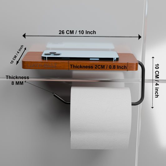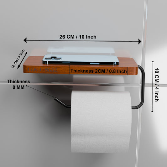 Buy Lakdibaaz | Wooden Toilet Paper Holder with Phone Shelf Wall Mounted Bathroom Tissue Roll Holder for Smartphone metals Matt Black Finish stand