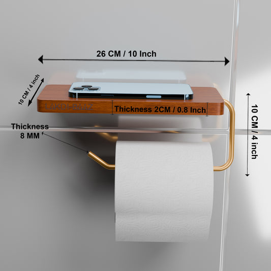 Buy Lakdibaaz | Wooden Toilet Paper Holder with Phone Shelf Wall Mounted Bathroom Tissue Roll Holder for Smartphone metals Gold Finish stand