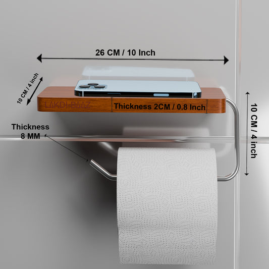 Buy Lakdibaaz | Wooden Toilet Paper Holder with Phone Shelf Wall Mounted Bathroom Tissue Roll Holder for Smartphone metals Silver Finish stand