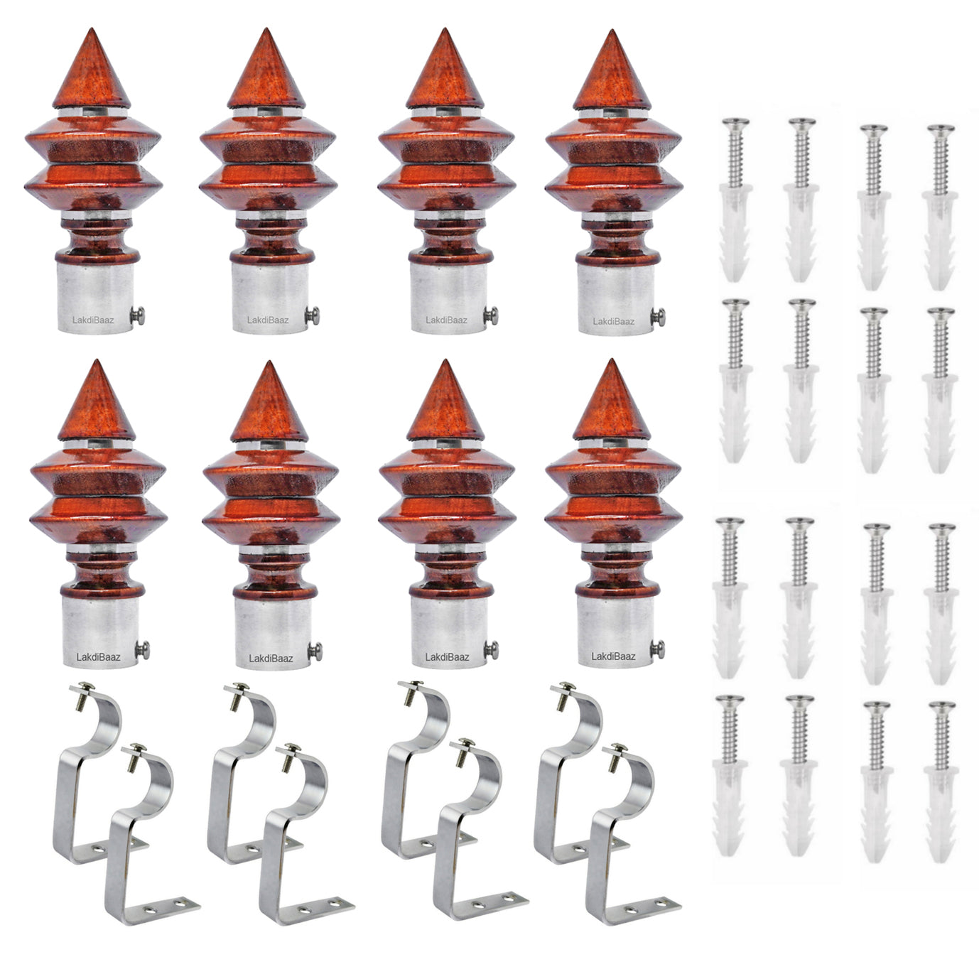 Upgrade the look of your home with our premium quality wooden curtain finials bracket in a rich Walnut color. Crafted to perfection, these finials are the perfect addition to your curtains, adding a touch of luxury and style to any room. Made from high-quality wood, our finials are durable and long-lasting. Transform your windows into a statement piece with these stunning wooden curtain finials brackets.